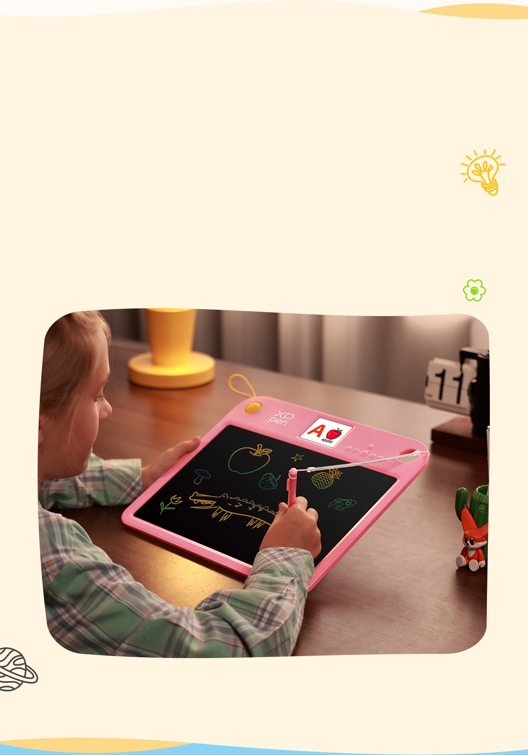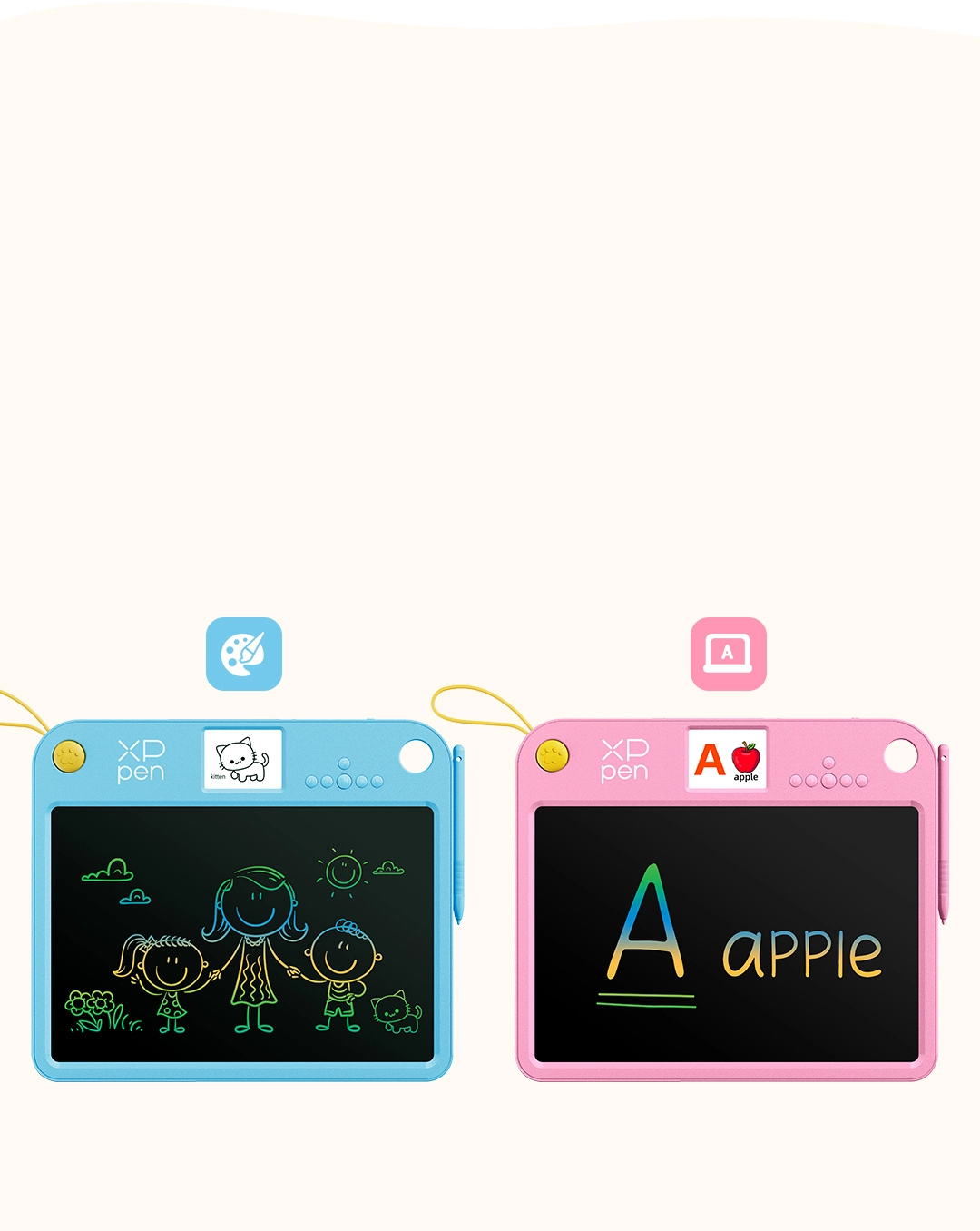 Drawing with colorful strokes on the XPPen Doodle Learning Board provides endless fun for your children. Its lightweight, child-friendly design makes it safe and portable, allowing them to draw anywhere.