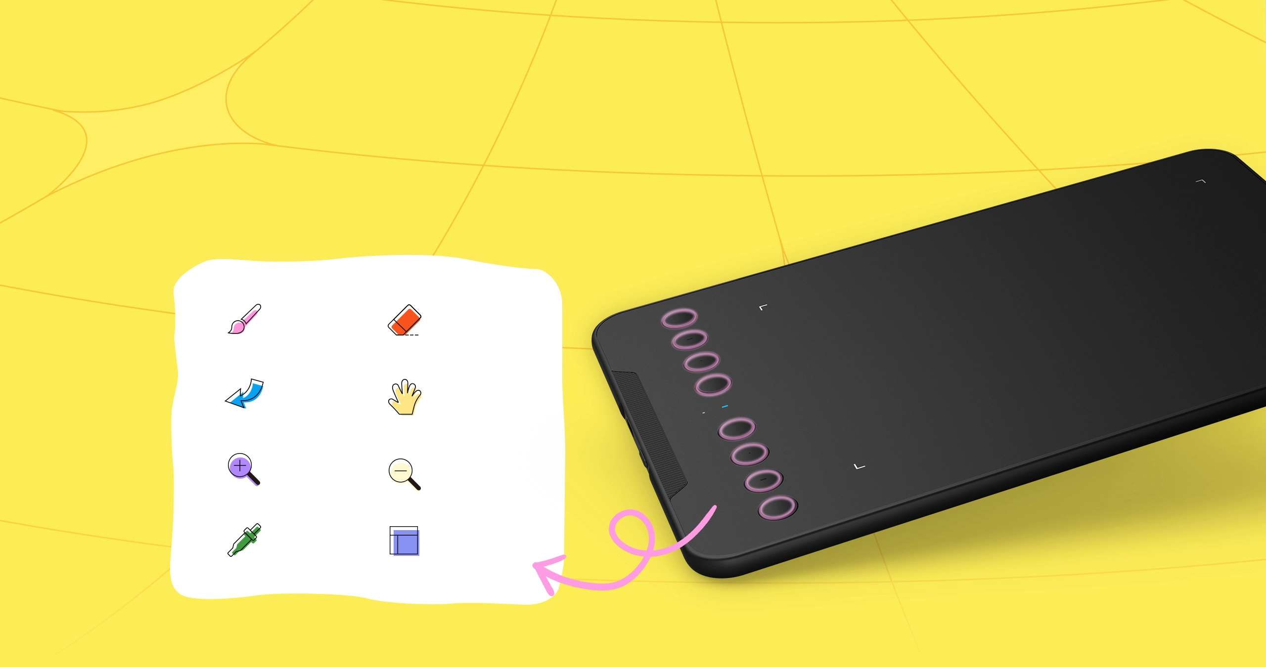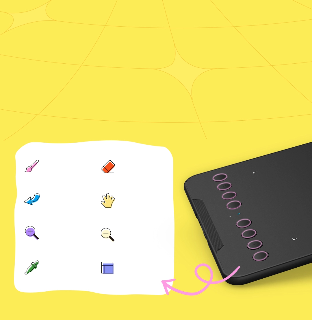 You can customize the functions of the eight shortcut keys on the side to suit your preferences. There is no need to frequently switch between the drawing tablet and the keyboard, effortlessly enhancing your creative efficiency.